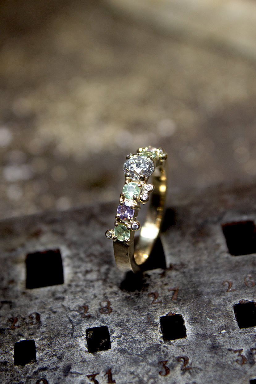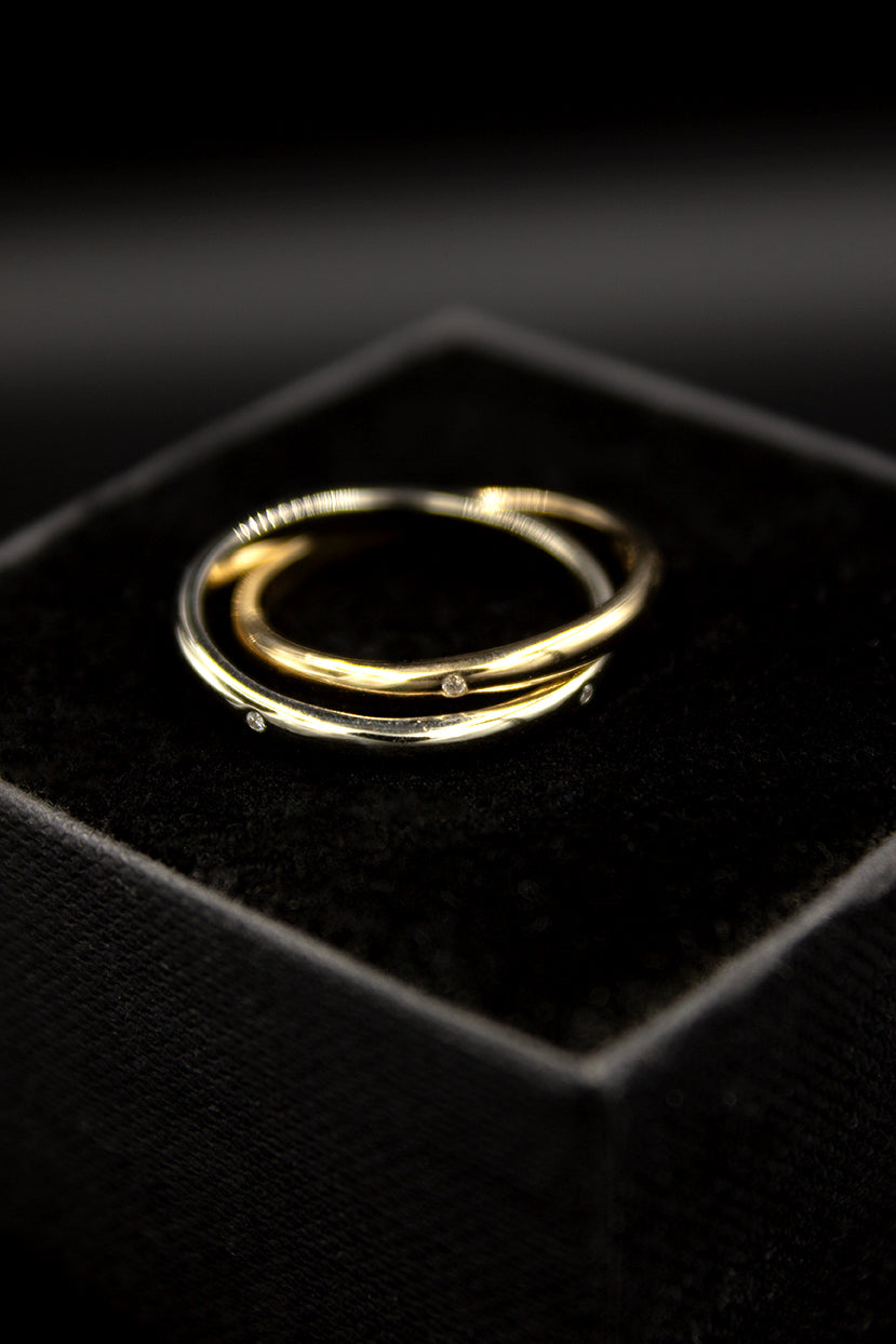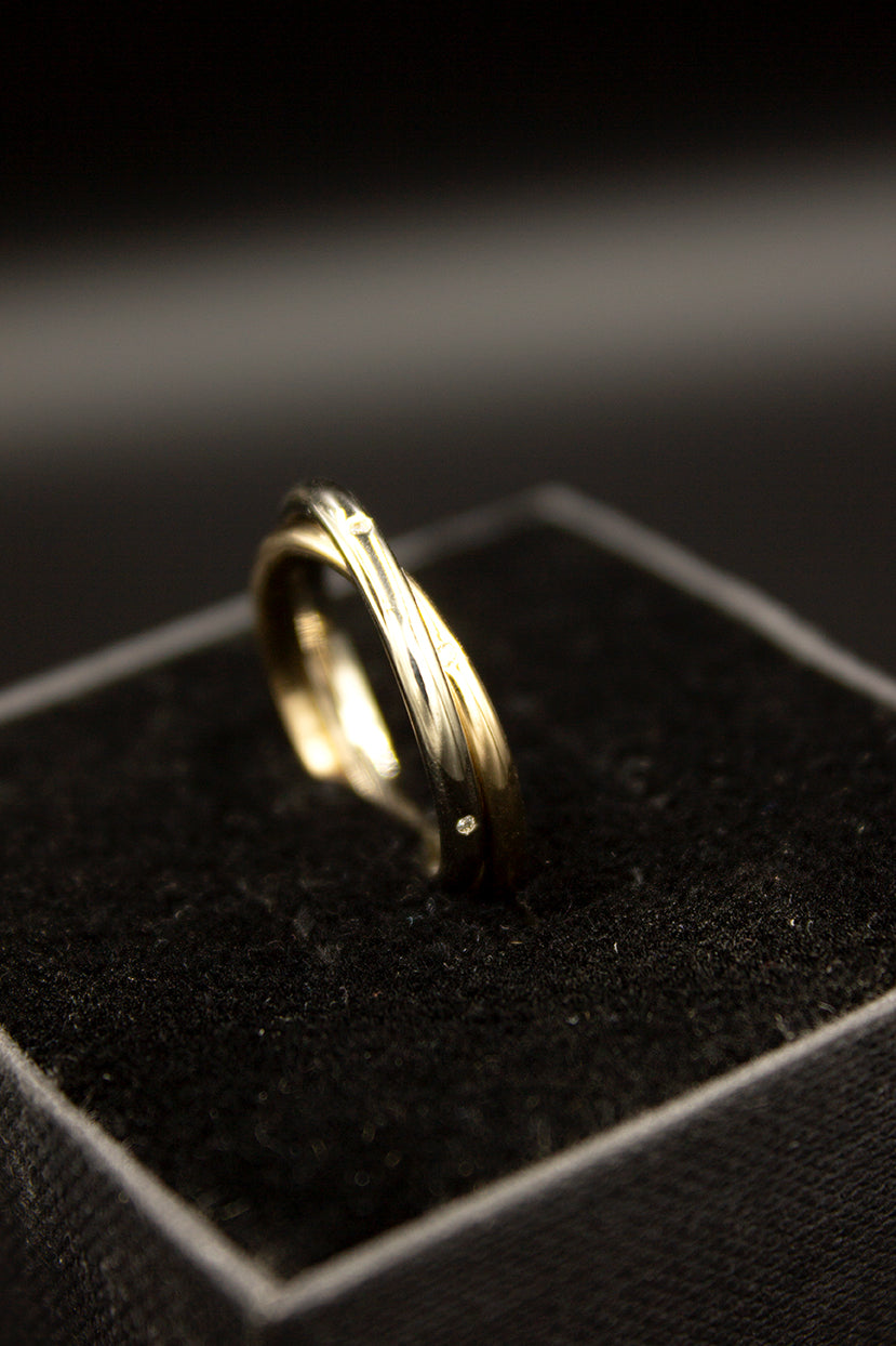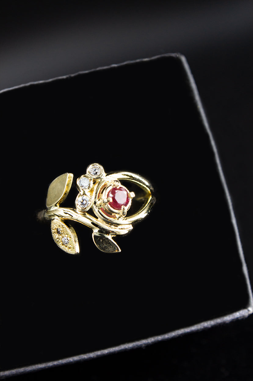 - Cette bague de fiançailles en or jaune 18 carats a été spécialement conçue pour répondre aux souhaits uniques d’un client désirant faire une demande en mariage inoubliable.