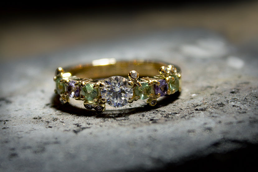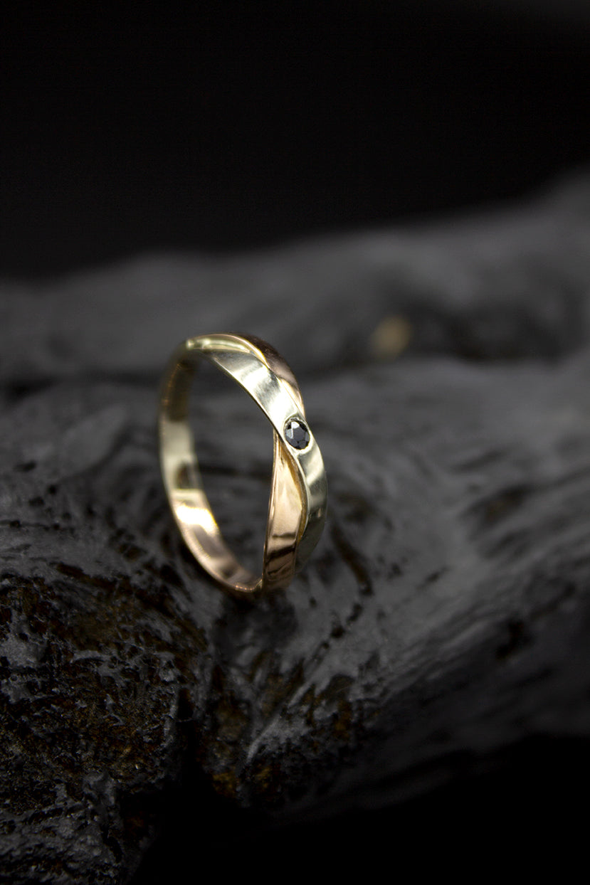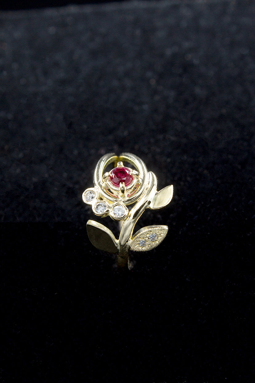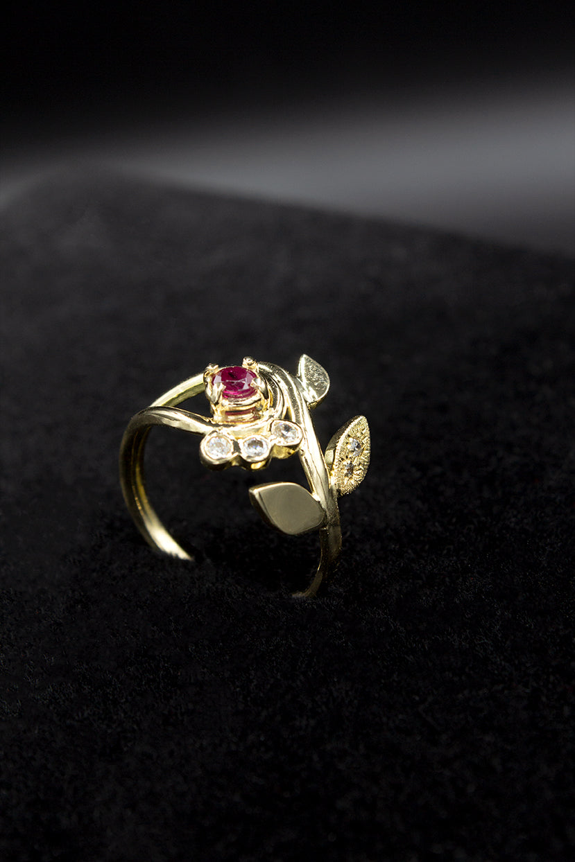 - Cette bague de fiançailles en or jaune 18 carats a été spécialement conçue pour répondre aux souhaits uniques d’un client désirant faire une demande en mariage inoubliable.